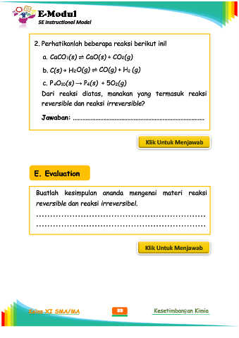 Kelas XI SMA/MA 32 Kesetimbangan Kimia