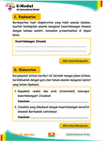 Kelas XI SMA/MA 39 Kesetimbangan Kimia