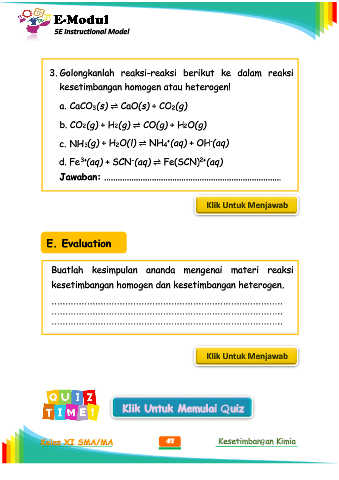 Kelas XI SMA/MA 47 Kesetimbangan Kimia