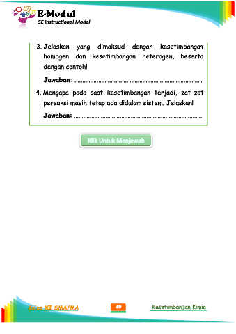 Kelas XI SMA/MA 49 Kesetimbangan Kimia