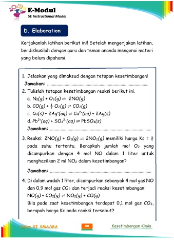 Kelas XI SMA/MA 60 Kesetimbangan Kimia