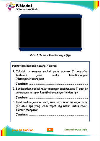 Kelas XI SMA/MA 67 Kesetimbangan Kimia