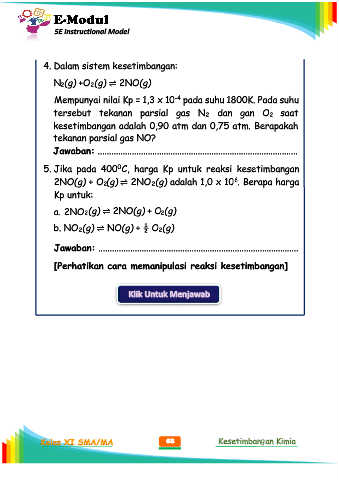 5. Jika pada 400 C, harga Kp untuk reaksi kesetimbangan