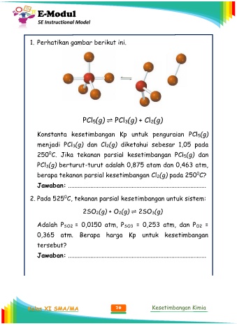 menjadi PCl 3(g) dan Cl 2(g) diketahui sebesar 1,05 pada