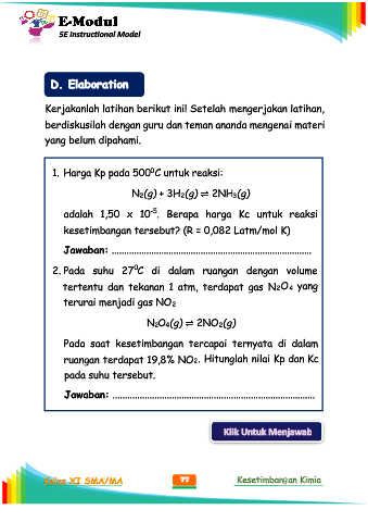 Kelas XI SMA/MA 77 Kesetimbangan Kimia
