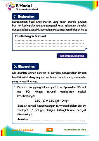 Kelas XI SMA/MA                             85                Kesetimbangan Kimia
