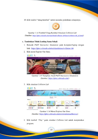 4. Klik tombol “Play” pada simulasi Collision Lab untuk menjalankan