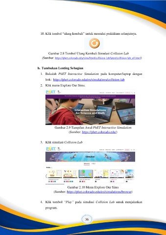 4. Klik tombol “Play” pada simulasi Collision Lab untuk menjalankan