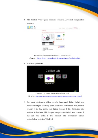 4. Klik tombol “Play” pada simulasi Collision Lab untuk menjalankan