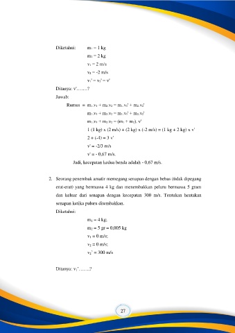 Rumus = m₁.v₁ + m₂.v₂ = m₁.v₁' + m₂.v₂'