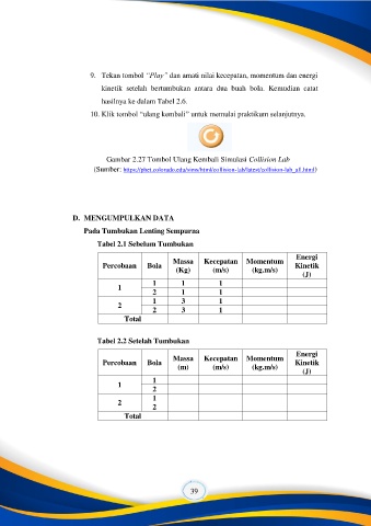 Gambar 2.27 Tombol Ulang Kembali Simulasi Collision Lab