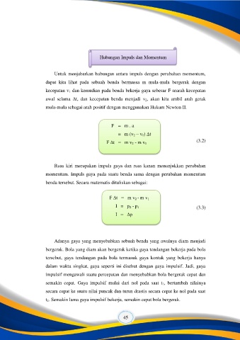 t 2. Semakin lama gaya impulsif bekerja, semakin cepat bola bergerak.