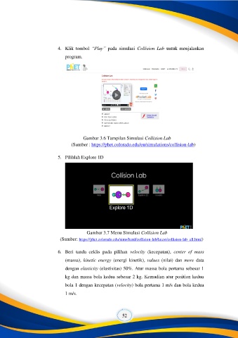 4. Klik tombol “Play” pada simulasi Collision Lab untuk menjalankan