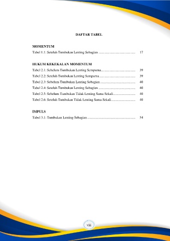 Tabel 2.4: Setelah Tumbukan Lenting Sebagian ........................................... 40