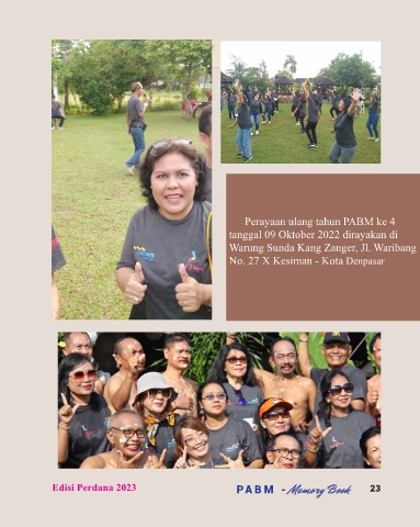 Pengalaman yang paling berkesan selama bekerja Perayaan ulang tahun PABM ke 4 tanggal 09 Oktober 2022 dirayakan di Warung Sunda Kang Zanger, Jl. Waribang No. 27 X Kesiman - Kota Denpasar Edisi Perdana 2023 PABM - Memory Book 23