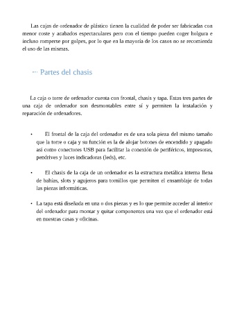 La caja o torre de ordenador cuenta con frontal, chasis y tapa. Estas tres partes de