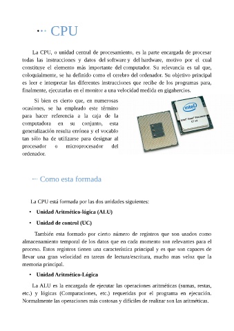 La CPU, o unidad central de procesamiento, es la parte encargada de procesar