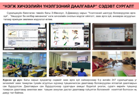 “НЭГЖ ХИЧЭЭЛИЙН ҮНЭЛГЭЭНИЙ ДААЛГАВАР” СЭДЭВТ СУРГАЛТ