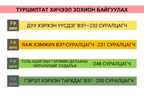 ТУРШИЛТАТ ХИЧЭЭЛ ЗОХИОН БАЙГУУЛАХ