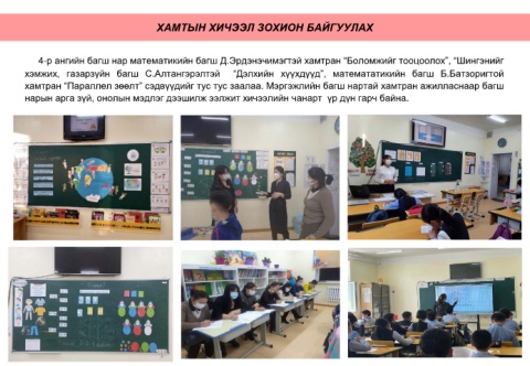 4-р ангийн багш нар математикийн багш Д.Эрдэнэчимэгтэй хамтран “Боломжийг тооцоолох”, “Шингэнийг