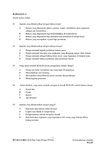 S2 Apakah yang dimaksudkan dengan bahasa slanga?