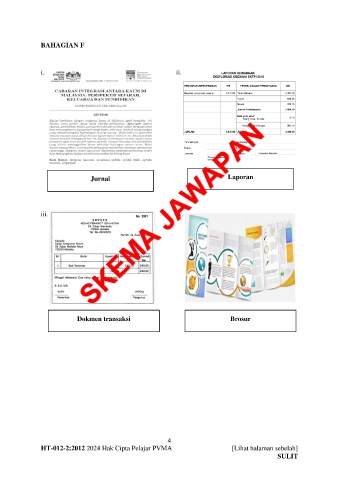 BAHAGIAN F i. ii. Jurnal Laporan iii. iv. Dokmen transaksi Brosur 4 HT-012-2:2012 2024 Hak Cipta Pelajar PVMA [Lihat halaman sebelah] SULIT
