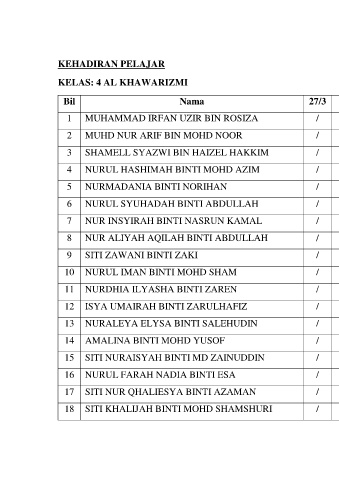 18 SITI KHALIJAH BINTI MOHD SHAMSHURI / / / / / / / / / / /