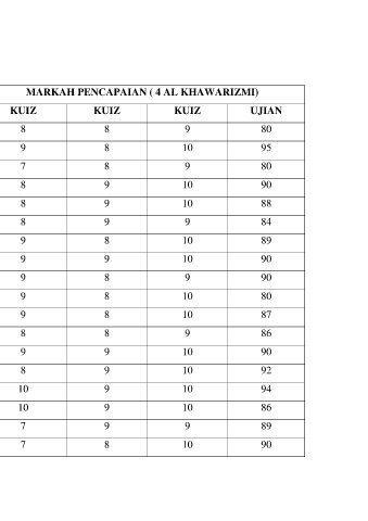 Bil Nama MARKAH PENCAPAIAN ( 4 AL KHAWARIZMI)