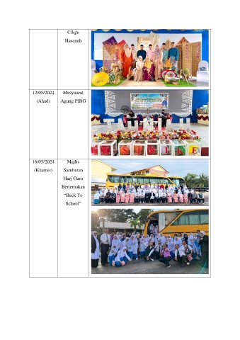 Cikgu Hasanah 12/05/2024 Mesyuarat (Ahad) Agung PIBG 16/05/2024 Majlis (Khamis) Sambutan Hari Guru Bertemakan “Back To School”