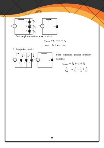 Pada rangkaian seri inductor, berlaku : 2. Rangkaian paralel Pada rangkaian paralel inductor, berlaku : 21