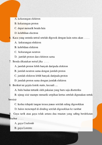 6. Kaca yang semula netral setelah digosok dengan kain sutra akan . . . .