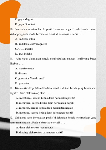 12. Jika elektroskop dalam keadaan netral didekati benda yang bermuatan