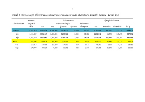 ตารางท 1 ประชากรอาย 15 ปขนไป จาแนกตามสถานภาพแรงงานและเพศ ภาคเหนอ เปนรายจงหวด ไตรมาสท 1 (มกราคม - มนาคม) 2563