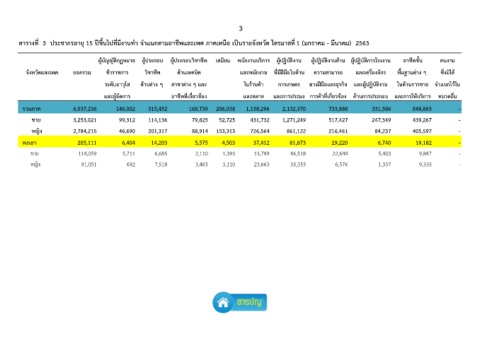ตารางท 3 ประชากรอาย 15 ปขนไปทมีงานทา จ าแนกตามอาชีพและเพศ ภาคเหนอ เปนรายจงหวด ไตรมาสท 1 (มกราคม - มีนาคม) 2563