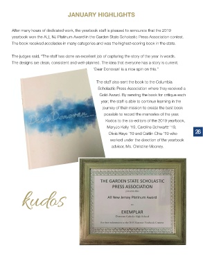 yearbook won the ALL NJ Platinum Award in the Garden State Scholastic Press Association contest.