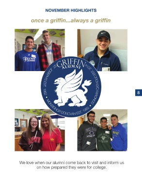 NOVEMBER HIGHLIGHTS once a griffin...always a griffin 8 We love when our alumni come back to visit and inform us on how prepared they were for college.