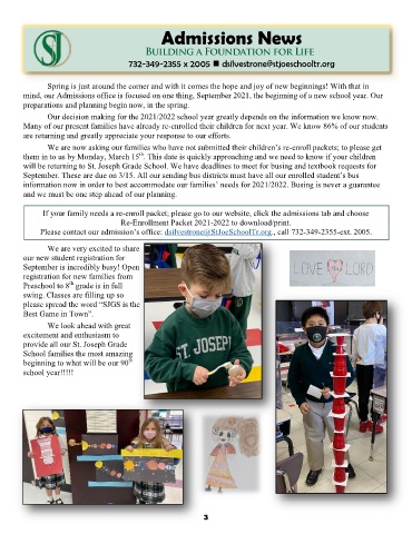 mind, our Admissions office is focused on one thing, September 2021, the beginning of a new school year. Our