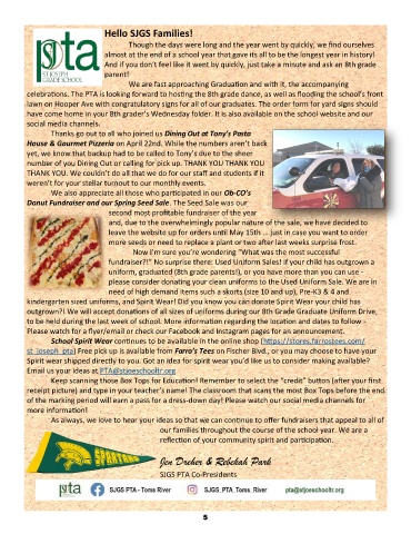 celebrations. The PTA is looking forward to hosting the 8th grade dance, as well as flooding the school’s front