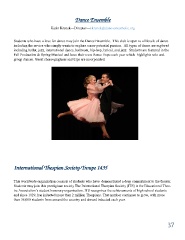 including ballet, jazz, international dance, ballroom, hip-hop, lyrical, and jazz. Students are featured in the