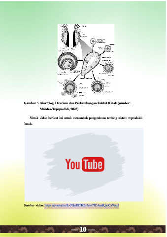 Gambar 5. Morfologi Ovarium dan Perkembangan Folikel Katak (sumber: Méndez-Tepepa dkk, 2023) Simak video berikut ini untuk menambah pengetahuan tentang sistem reproduksi katak. Sumber video: https://youtu.be/L-7GoJSTE2o?si=7fCAaslQjoCsVaqJ — 10 —