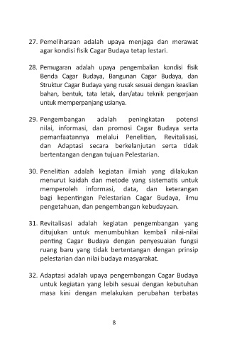 32. Adaptasi adalah upaya pengembangan Cagar Budaya