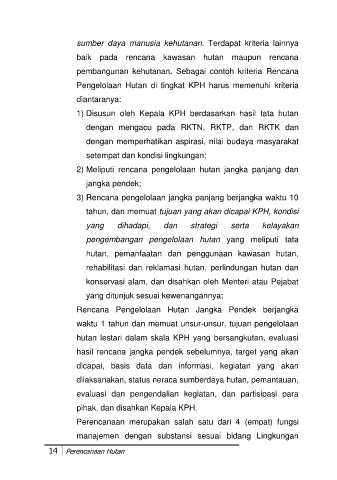 sumber daya manusia kehutanan. Terdapat kriteria lainnya