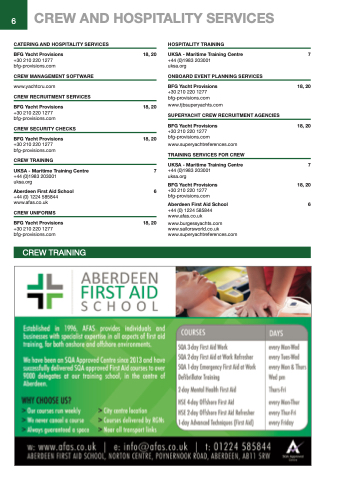 6 CREW AND HOSPITALITY SERVICES CATERING AND HOSPITALITY SERVICES BFG Yacht Provisions +30 210 220 1277 bfg-provisions.com CREW MANAGEMENT SOFTWARE www.yachtcru.com CREW RECRUITMENT SERVICES BFG Yacht Provisions +30 210 220 1277 bfg-provisions.com CREW SECURITY CHECKS BFG Yacht Provisions +30 210 220 1277 bfg-provisions.com CREW TRAINING UKSA - Maritime Training Centre +44 (0)1983 203001 uksa.org Aberdeen First Aid School +44 (0) 1224 585844 www.afas.co.uk BFG Yacht Provisions +30 210 220 1277 bfg-provisions.com CREW TRAINING HOSPITALITY TRAINING UKSA - Maritime Training Centre +44 (0)1983 203001 uksa.org ONBOARD EVENT PLANNING SERVICES BFG Yacht Provisions +30 210 220 1277 bfg-provisions.com www.tjbsuperyachts.com SUPERYACHT CREW RECRUITMENT AGENCIES BFG Yacht Provisions +30 210 220 1277 bfg-provisions.com www.superyachtreferences.com TRAINING SERVICES FOR CREW UKSA - Maritime Training Centre +44 (0)1983 203001 uksa.org BFG Yacht Provisions +30 210 220 1277 bfg-provisions.com Aberdeen First Aid School +44 (0) 1224 585844 www.afas.co.uk www.burgessyachts.com www.sailorsworld.co.uk www.superyachtreferences.com 18, 20 18, 20 18, 20 7 6 IL&GAS-2025.qxp_Layout 1 27/02/2025 10:28 Page 13 7 18, 20 18, 20 7 18, 20 6 CREW UNIFORMS 18, 20 COMPANY NEWS 13 O