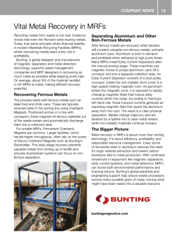 \u0020\u0020\u0020\u0020\u0020\u0020\u0020\u0020\u0020\u0020\u0020\u0020\u0020\u0020\u0020\u0020\u0020\u0020\u0020\u0043\u004F\u004D\u0050\u0041\u004E\u0059\u0020\u004E\u0045\u0057\u0053\u000A\u0020\u0031\u0033\u000A\u0056\u0069\u0074\u0061\u006C\u0020\u004D\u0065\u0074\u0061\u006C\u0020\u0052\u0065\u0063\u006F\u0076\u0065\u0072\u0079\u0020\u0069\u006E\u0020\u004D\u0052\u0046\u0073\u000A\u0052\u0065\u0063\u0079\u0063\u006C\u0069\u006E\u0067\u0020\u006D\u0065\u0074\u0061\u006C\u0073\u0020\u0066\u0072\u006F\u006D\u0020\u0077\u0061\u0073\u0074\u0065\u0020\u0069\u0073\u0020\u006E\u006F\u0074\u0020\u006E\u0065\u0077\u002E\u0020\u0045\u0076\u0069\u0064\u0065\u006E\u0063\u0065\u0020\u0073\u0068\u006F\u0077\u0073\u0020\u0074\u0068\u0061\u0074\u0020\u0065\u0076\u0065\u006E\u0020\u0074\u0068\u0065\u0020\u0052\u006F\u006D\u0061\u006E\u0073\u0020\u0077\u0065\u0072\u0065\u0020\u0072\u0065\u0075\u0073\u0069\u006E\u0067\u0020\u006D\u0065\u0074\u0061\u006C\u0073\u002E\u0020\u0054\u006F\u0064\u0061\u0079\u002C\u0020\u0074\u0068\u0061\u0074\u0020\u0073\u0061\u006D\u0065\u0020\u0070\u0072\u0069\u006E\u0063\u0069\u0070\u006C\u0065\u0020\u0064\u0072\u0069\u0076\u0065\u0073\u0020\u0066\u0069\u006E\u0061\u006E\u0063\u0069\u0061\u006C\u0020\u0073\u0074\u0061\u0062\u0069\u006C\u0069\u0074\u0079\u0020\u0069\u006E\u0020\u006D\u006F\u0064\u0065\u0072\u006E\u0020\u004D\u0061\u0074\u0065\u0072\u0069\u0061\u006C\u0073\u0020\u0052\u0065\u0063\u0079\u0063\u006C\u0069\u006E\u0067\u0020\u0046\u0061\u0063\u0069\u006C\u0069\u0074\u0069\u0065\u0073\u0020\u0028\u004D\u0052\u0046\u0073\u0029\u002C\u0020\u0077\u0068\u0065\u0072\u0065\u0020\u0072\u0065\u0063\u006F\u0076\u0065\u0072\u0069\u006E\u0067\u0020\u006D\u0065\u0074\u0061\u006C\u0073\u0020\u0070\u006C\u0061\u0079\u0073\u0020\u0061\u0020\u006B\u0065\u0079\u0020\u0072\u006F\u006C\u0065\u0020\u0069\u006E\u0020\u0070\u0072\u006F\u0066\u0069\u0074\u0061\u0062\u0069\u006C\u0069\u0074\u0079\u002E\u000A\u0042\u0075\u006E\u0074\u0069\u006E\u0067\u002C\u0020\u0061\u0020\u0067\u006C\u006F\u0062\u0061\u006C\u0020\u0064\u0065\u0073\u0069\u0067\u006E\u0065\u0072\u0020\u0061\u006E\u0064\u0020\u006D\u0061\u006E\u0075\u0066\u0061\u0063\u0074\u0075\u0072\u0065\u0072\u000A\u006F\u0066\u0020\u006D\u0061\u0067\u006E\u0065\u0074\u0069\u0063\u0020\u0073\u0065\u0070\u0061\u0072\u0061\u0074\u0069\u006F\u006E\u0020\u0061\u006E\u0064\u0020\u006D\u0065\u0074\u0061\u006C\u0020\u0064\u0065\u0074\u0065\u0063\u0074\u0069\u006F\u006E\u0020\u0074\u0065\u0063\u0068\u006E\u006F\u006C\u006F\u0067\u0079\u002C\u0020\u0073\u0075\u0070\u0070\u006F\u0072\u0074\u0073\u0020\u0077\u0061\u0073\u0074\u0065\u0020\u006D\u0061\u006E\u0061\u0067\u0065\u006D\u0065\u006E\u0074\u0020\u0063\u006F\u006D\u0070\u0061\u006E\u0069\u0065\u0073\u0020\u0061\u006E\u0064\u0020\u004D\u0052\u0046\u0020\u0064\u0065\u0073\u0069\u0067\u006E\u0065\u0072\u0073\u0020\u0069\u006E\u0020\u0072\u0065\u0063\u006F\u0076\u0065\u0072\u0069\u006E\u0067\u0020\u0061\u0073\u0020\u006D\u0075\u0063\u0068\u0020\u006D\u0065\u0074\u0061\u006C\u0020\u0061\u0073\u0020\u0070\u006F\u0073\u0073\u0069\u0062\u006C\u0065\u0020\u0077\u0068\u0069\u006C\u0065\u0020\u006B\u0065\u0065\u0070\u0069\u006E\u0067\u0020\u0070\u0075\u0072\u0069\u0074\u0079\u0020\u0068\u0069\u0067\u0068\u002E\u0020\u004F\u006E\u0020\u0061\u0076\u0065\u0072\u0061\u0067\u0065\u002C\u0020\u0061\u0062\u006F\u0075\u0074\u0020\u0038\u0025\u0020\u006F\u0066\u0020\u0074\u0068\u0065\u0020\u006D\u0061\u0074\u0065\u0072\u0069\u0061\u006C\u0020\u0068\u0061\u006E\u0064\u006C\u0065\u0064\u000A\u0069\u006E\u0020\u0055\u004B\u0020\u004D\u0052\u0046\u0073\u0020\u0069\u0073\u0020\u006D\u0065\u0074\u0061\u006C\u002C\u0020\u006D\u0061\u006B\u0069\u006E\u0067\u0020\u0065\u0066\u0066\u0069\u0063\u0069\u0065\u006E\u0074\u0020\u0072\u0065\u0063\u006F\u0076\u0065\u0072\u0079\u0020\u0065\u0073\u0073\u0065\u006E\u0074\u0069\u0061\u006C\u002E\u000A\u0052\u0065\u0063\u006F\u0076\u0065\u0072\u0069\u006E\u0067\u0020\u0046\u0065\u0072\u0072\u006F\u0075\u0073\u0020\u004D\u0065\u0074\u0061\u006C\u0073\u000A\u0054\u0068\u0065\u0020\u0070\u0072\u006F\u0063\u0065\u0073\u0073\u0020\u0073\u0074\u0061\u0072\u0074\u0073\u0020\u0077\u0069\u0074\u0068\u0020\u0066\u0065\u0072\u0072\u006F\u0075\u0073\u0020\u006D\u0065\u0074\u0061\u006C\u0073\u0020\u0073\u0075\u0063\u0068\u0020\u0061\u0073\u0020\u0073\u0074\u0065\u0065\u006C\u0020\u0066\u006F\u006F\u0064\u0020\u0061\u006E\u0064\u0020\u0064\u0072\u0069\u006E\u006B\u0020\u0063\u0061\u006E\u0073\u002E\u0020\u0054\u0068\u0065\u0073\u0065\u0020\u0061\u0072\u0065\u0020\u0074\u0079\u0070\u0069\u0063\u0061\u006C\u006C\u0079\u0020\u0072\u0065\u006D\u006F\u0076\u0065\u0064\u0020\u0065\u0061\u0072\u006C\u0079\u0020\u0069\u006E\u0020\u0074\u0068\u0065\u0020\u0073\u006F\u0072\u0074\u0069\u006E\u0067\u0020\u006C\u0069\u006E\u0065\u0020\u0075\u0073\u0069\u006E\u0067\u0020\u004F\u0076\u0065\u0072\u0062\u0061\u006E\u0064\u0020\u004D\u0061\u0067\u006E\u0065\u0074\u0073\u002E\u0020\u0050\u006F\u0073\u0069\u0074\u0069\u006F\u006E\u0065\u0064\u0020\u0061\u0063\u0072\u006F\u0073\u0073\u0020\u006F\u0072\u0020\u0069\u006E\u0020\u006C\u0069\u006E\u0065\u0020\u0077\u0069\u0074\u0068\u0020\u0063\u006F\u006E\u0076\u0065\u0079\u006F\u0072\u0073\u002C\u0020\u0074\u0068\u0065\u0073\u0065\u0020\u006D\u0061\u0067\u006E\u0065\u0074\u0073\u0020\u006C\u0069\u0066\u0074\u0020\u0066\u0065\u0072\u0072\u006F\u0075\u0073\u0020\u006D\u0061\u0074\u0065\u0072\u0069\u0061\u006C\u0073\u0020\u006F\u0075\u0074\u0020\u006F\u0066\u0020\u0074\u0068\u0065\u0020\u0077\u0061\u0073\u0074\u0065\u0020\u0073\u0074\u0072\u0065\u0061\u006D\u0020\u0061\u006E\u0064\u0020\u0061\u0075\u0074\u006F\u006D\u0061\u0074\u0069\u0063\u0061\u006C\u006C\u0079\u0020\u0064\u0069\u0073\u0063\u0068\u0061\u0072\u0067\u0065\u0020\u0074\u0068\u0065\u006D\u0020\u0069\u006E\u0074\u006F\u0020\u0061\u0020\u0063\u006F\u006C\u006C\u0065\u0063\u0074\u0069\u006F\u006E\u0020\u0061\u0072\u0065\u0061\u002E\u000A\u0046\u006F\u0072\u0020\u0073\u006D\u0061\u006C\u006C\u0065\u0072\u0020