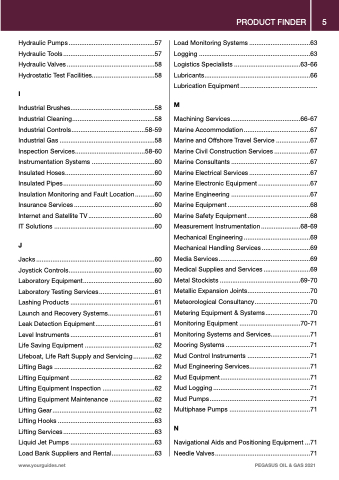 Machining Services.......................................66-67 Marine Accommodation .....................................67 Marine and Offshore Travel Service ...................67 Marine Civil Construction Services ....................67 Marine Consultants ............................................67 Marine Electrical Services ..................................67 Marine Electronic Equipment .............................67 Marine Engineering ............................................67 Marine Equipment ..............................................68 Marine Safety Equipment...................................68 Measurement Instrumentation ......................68-69 Mechanical Engineering .....................................69 Mechanical Handling Services ...........................69 Media Services...................................................69 Medical Supplies and Services ..........................69 Metal Stockists .............................................69-70 Metallic Expansion Joints...................................70 Meteorological Consultancy...............................70 Metering Equipment & Systems.........................70 Monitoring Equipment ..................................70-71 Monitoring Systems and Services......................71 Mooring Systems ...............................................71 Mud Control Instruments ...................................71 Mud Engineering Services..................................71 Mud Equipment..................................................71 Mud Logging ......................................................71 Mud Pumps........................................................71 Multiphase Pumps .............................................71