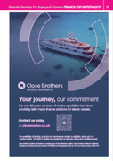 Essential Services For Superyacht Owners FINANCE FOR SUPERYACHTS 17 Your journey, our commitment For over 20 years our team of marine specialists have been providing tailor-made finance solutions for leisure vessels. Contact us today closemarine.co.uk The availability of lending, products and services are subject to eligibility, status and our lending criteria. The right to decline any application is reserved, terms and conditions apply. Close Brothers Aviation and Marine is a trading style of Close Brothers Limited. Close Brothers Limited is registered in England and Wales (Company Number 00195626) and its registered office is 10 Crown Place, London, EC2A 4FT.