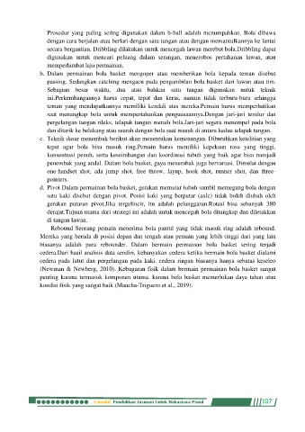 d. Pivot Dalam permainan bola basket, gerakan memutar tubuh sambil memegang bola dengan