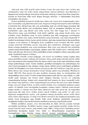 maupun emosional. Pendidikan jasmani yang benar akan memberikan sumbangan yang sangat