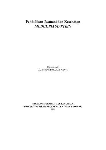 Pendidikan Jasmani dan Kesehatan MODUL PIAUD PTKIN Disusun oleh: CAHNIYO WIJAYA KUSWANTO FAKULTAS TARBIYAH DAN KEGURUAN UNIVERSITAS ISLAM NEGERI RADEN INTAN LAMPUNG 2023
