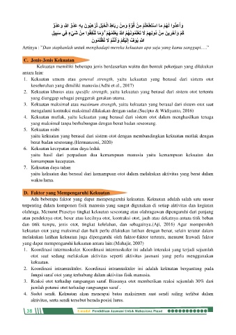 yaitu kekuatan dan berasal dari kemampuan otot dalam melakukan aktivitas yang berat dalam
